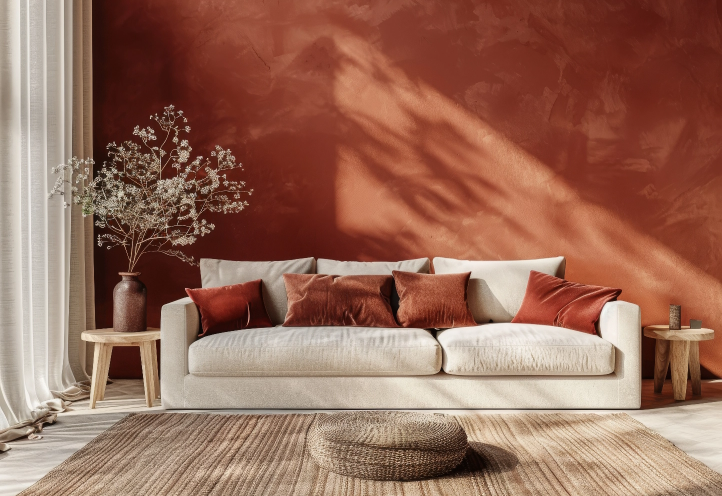 Tonos terracota, arcilla y arena que aportan calidez. Y colores profundos como el azul cobalto, verde bosque y berenjena se usarán en paredes de acento o muebles protagonistas (como sillones de terciopelo) para dar sofisticación y carácter.